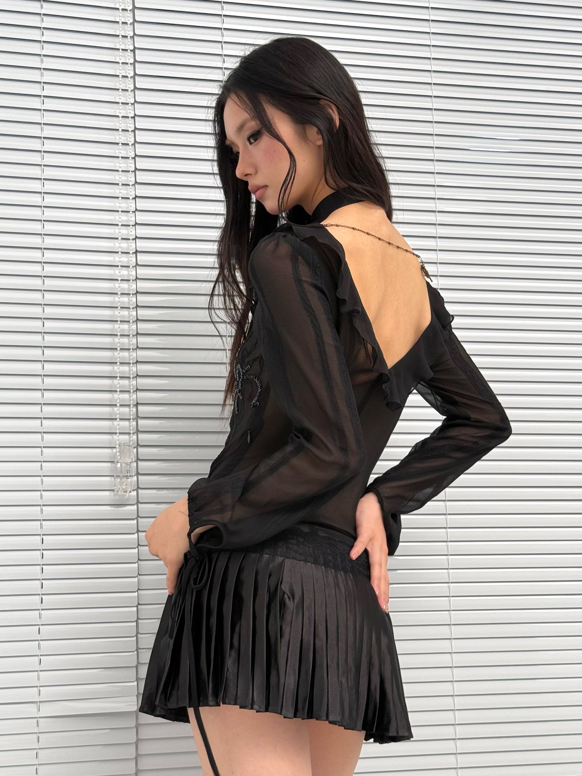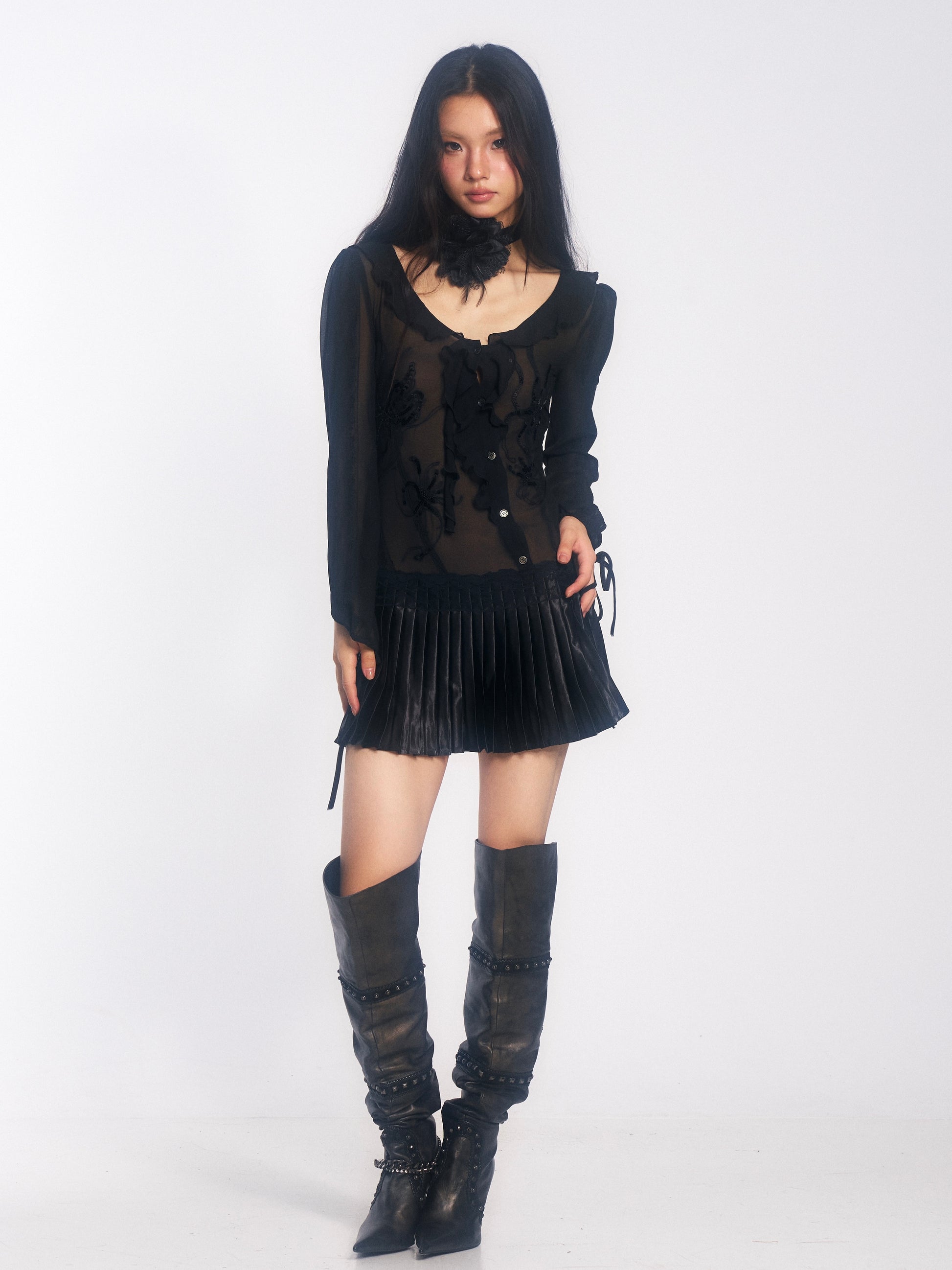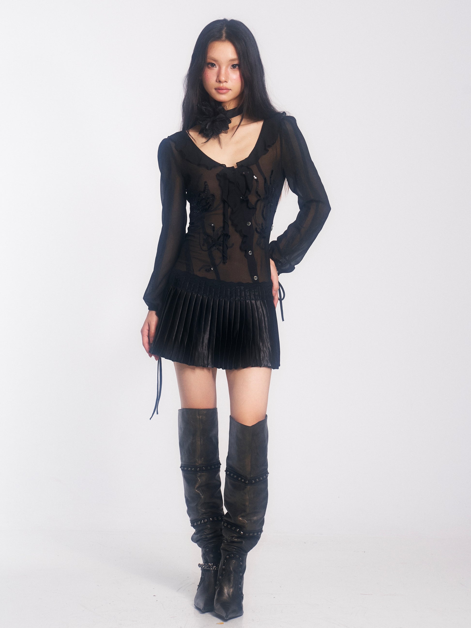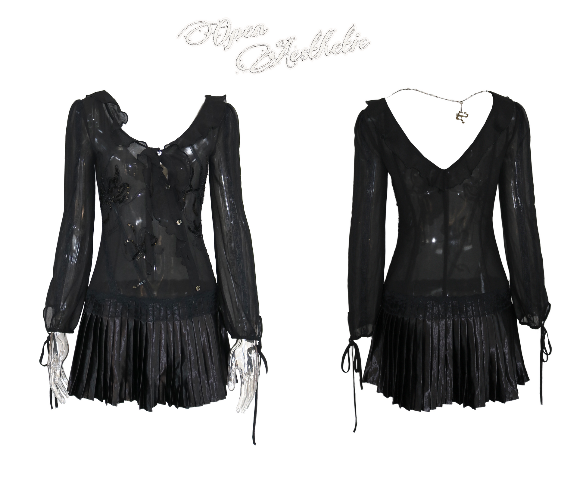 Chiffon Dress with Embroidered Sequins and Ruffle Insets