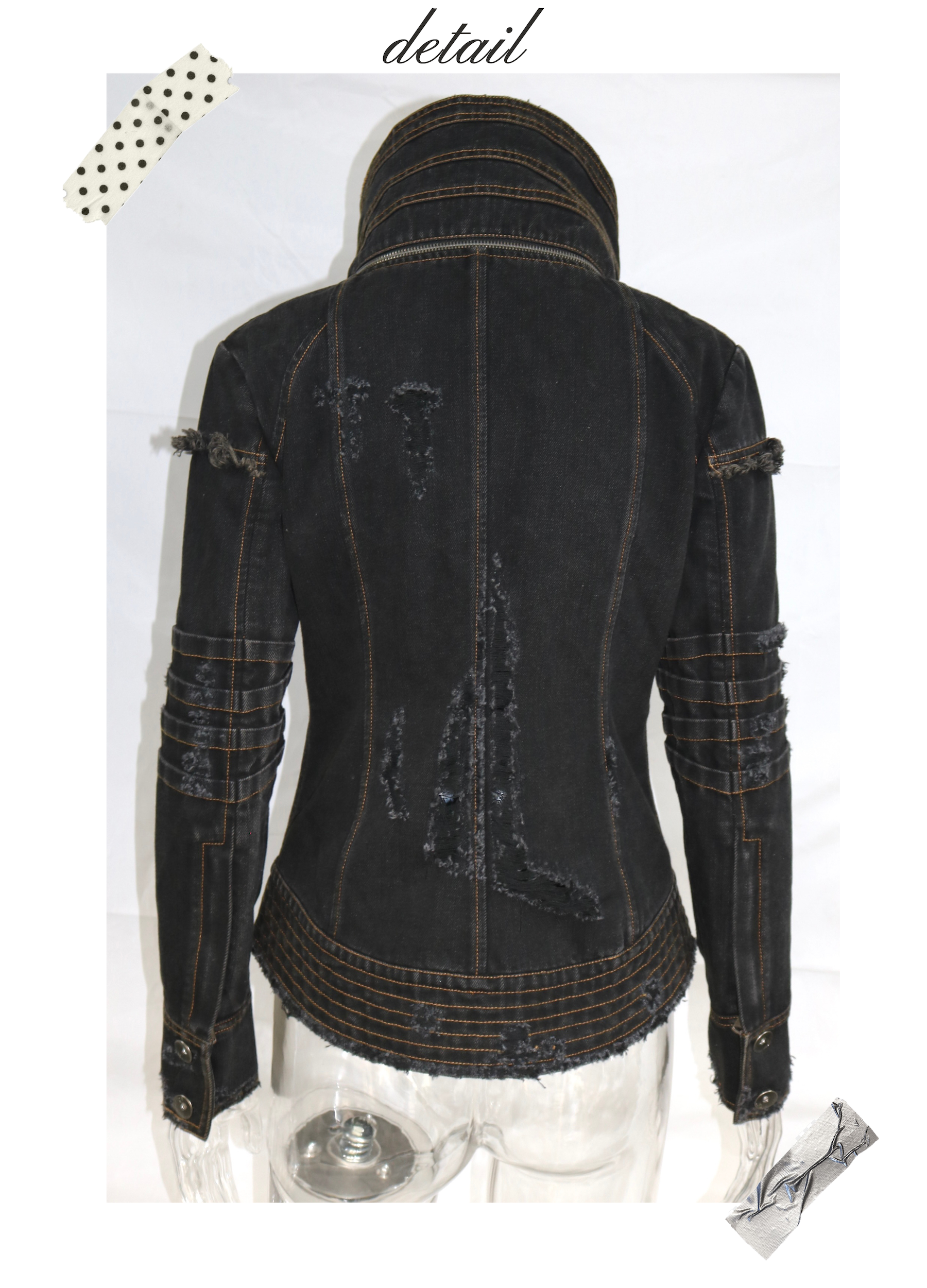 This jacket features a relaxed, flattering fit with a wash process that creates a worn-in, distressed texture. It is designed with an oversized collar that can be worn either standing up or folded down.